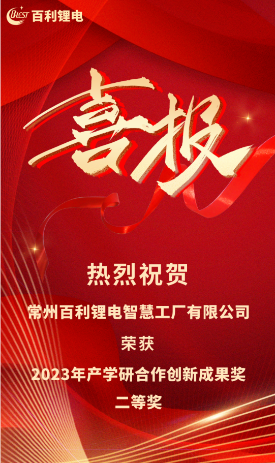 百利鋰電榮獲“2023年產學研合作創新成果獎二等獎”